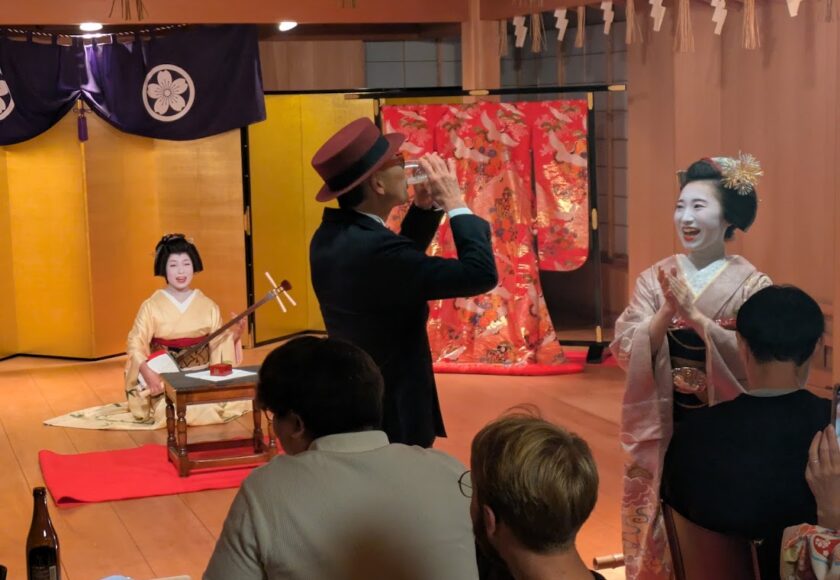 初めての方も多くご参加頂いていますが、参加者の方同士、芸舞妓さんを通して仲良くなって頂けたりと、和気あいあいとした雰囲気で行っておりますので是非初めての方や女性の方もお気軽にご参加下さい。