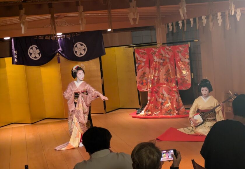 京おどりを観に行かれた後は、舞台に出演されている芸舞妓さんと食事やお酒を飲みながらお話出来る時間、改めて舞や演奏をお楽しみ頂ければと思います。